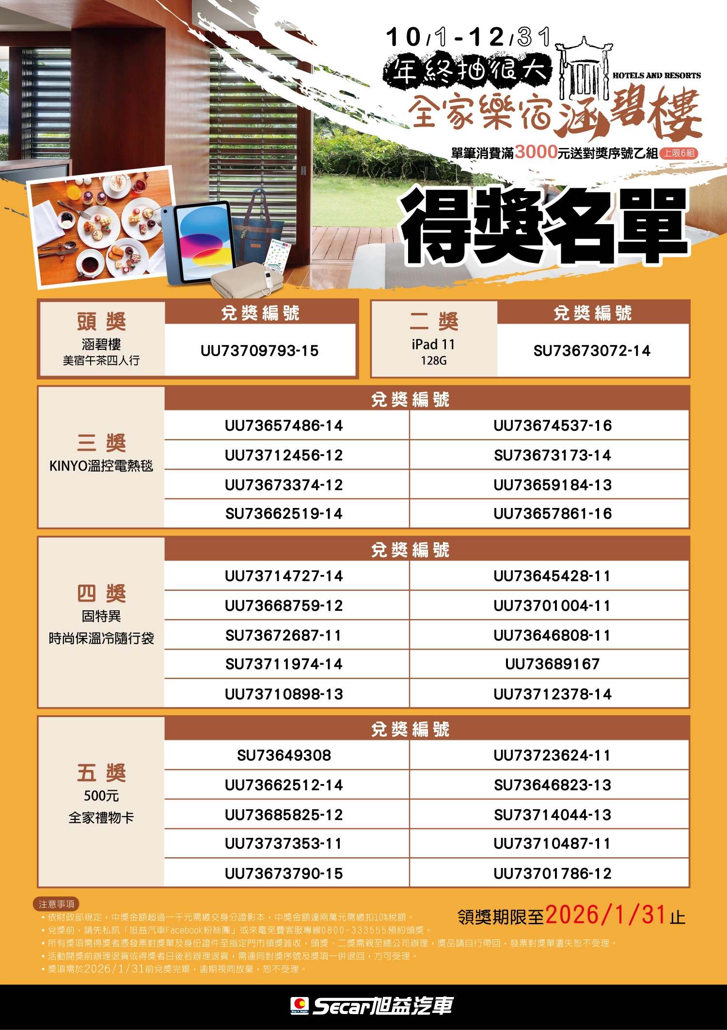 中獎名單|2025/10/1-12/31 年終抽很大!全家樂宿涵碧樓
