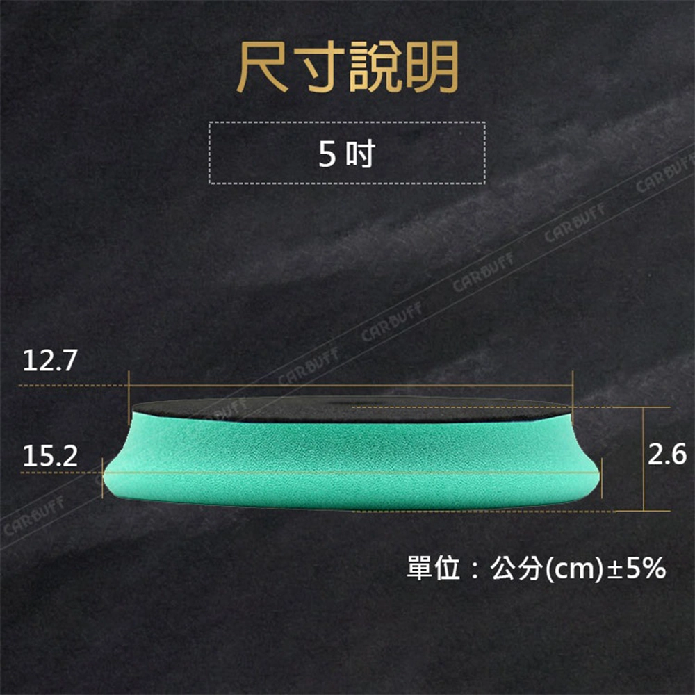 尺寸:5吋(魔鬼氈直徑12.7cm±5%,海綿面直徑15.2cm±5%)