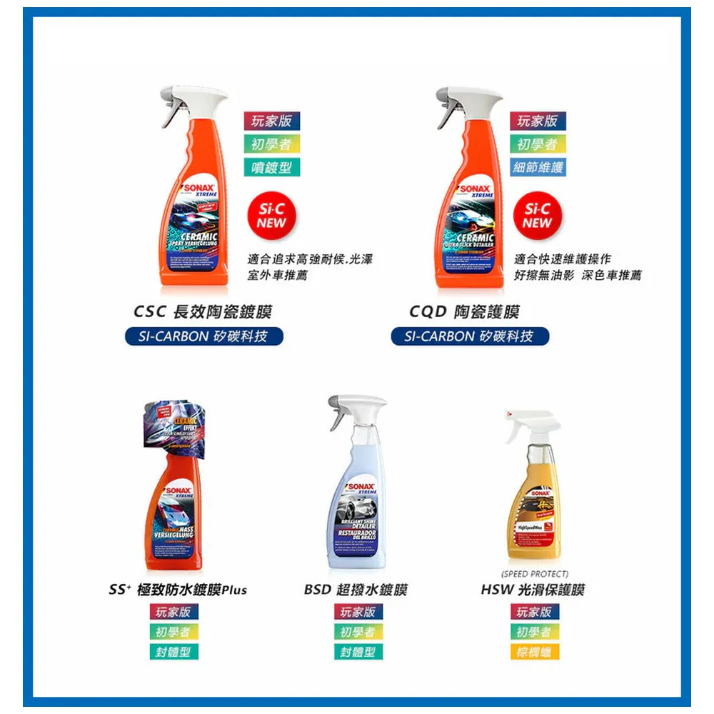 SONAX 極致防水鍍膜提供光亮且滑溜如絲綢般觸
