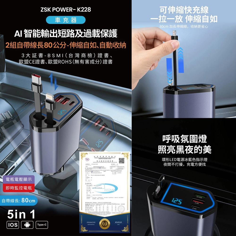 .產品名稱:ZSK POWER K228 3C車充汽車電壓電池檢測器